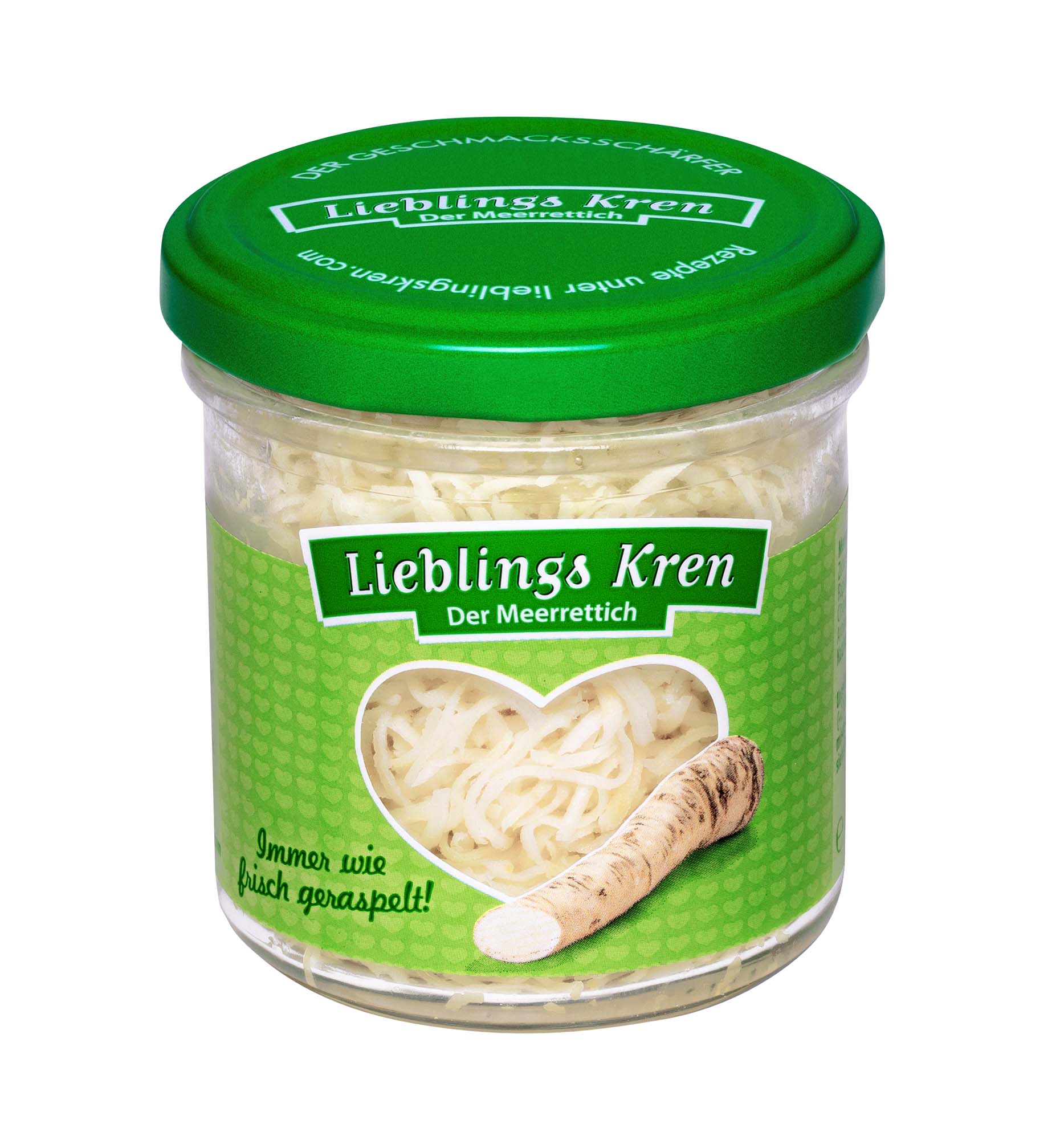 Der LieblingsKren ist der immer frisch geriebene Meerrettich im praktischen Glas. Er bringt die ideale Würze ins tägliche Menü und passt perfekt zu Fisch, Fleisch, Suppe, Salat oder Brotzeit. Frisch geraspelt und geputzt holen Sie sich belebende Frische und Würze mit einer Portion LieblingsKren direkt vom Feld auf Ihren Tisch.