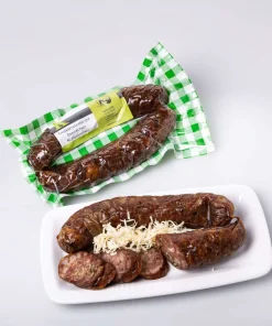 Diese grobe Leberwurst, mit Zwiebeln verfeinert, eignet sich auf einem knusprigen Bauernbrot zusammen mit Radiesle und Essiggürkchen hervorragend für ein herzhaftes Vesper.